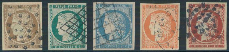 FRANKREICH - 5 Marken "Cérès", Fälschungen