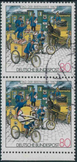 GERMANY Mi. 1337II VFU - Variety "railing broken", pair with normal stamp