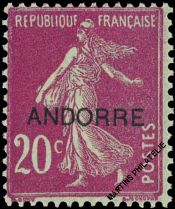 1931: Overprint 'ANDORRE' - 20 cts. lilac