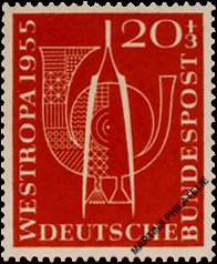 1955 - Philatelic exhibition 'Westropa' : Watermark 'D, B, P, and flowers' - 20 Pfg. + 3 Pfg. ; brown-red