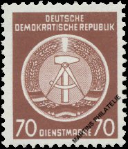 1954 - Dienstmarke, Zirkel : Rasterpunkte im Mittelstück und Zirkelbogen nach links, Wasserzeichen 'DDR und Posthorn' - 70 Pfg. ; braun