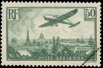 1936 - Air Plane Caudron 635 'Simoun' over Paris - 50 Fr. dark green
