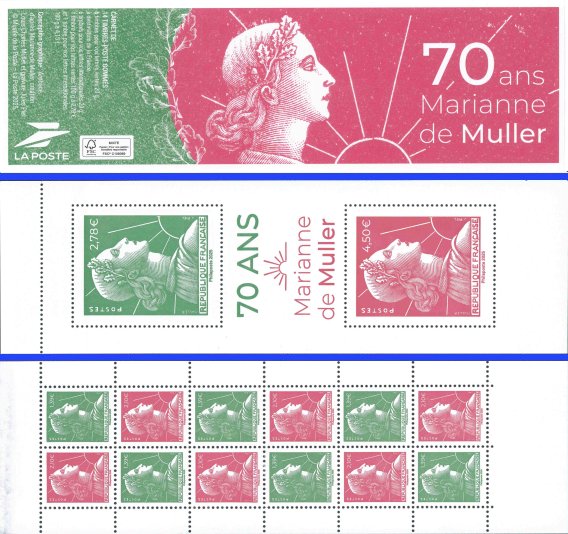 2025 : Marianne de Muller - 14 timbres de petit et grand format, dans carnet complet d'origine