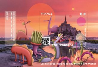 2025 : Krypto-Briefmarke 6.1.: Bauwerke - Mont St. Michel - selbstklebende Blockmarke (geliefert im Block und Originalverpackung, "Pack Bauwerke - Mont St. Michel")