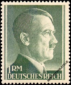 1941-1943 - Effigie d'Hitler : Dentelé 14 - vert-noir ; 1 Mk.