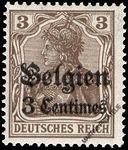 1914 : Germania - Aufdruck 'Belgien' und '3 centimes' auf 3 Pfg.