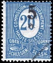 1920 : Chiffre dans ovale avec surcharge '5 Pf' sur 20 Pfg.