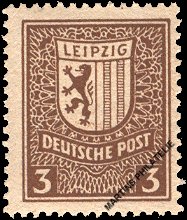West-Sachsen : Leipziger Wappen, ohne Wasserzeichen, auf graues Papier - 3 Pfg. ; braun